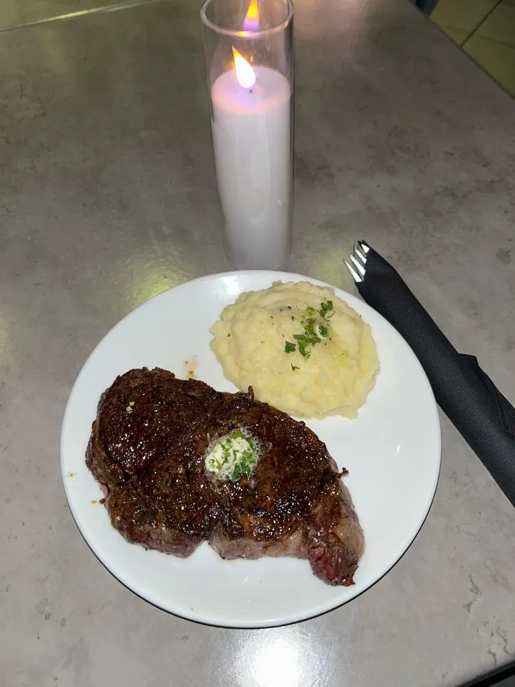 An 8oz. juicy ribeye expertly seasoned and grilled to perfection. Served with your choice of two sides.